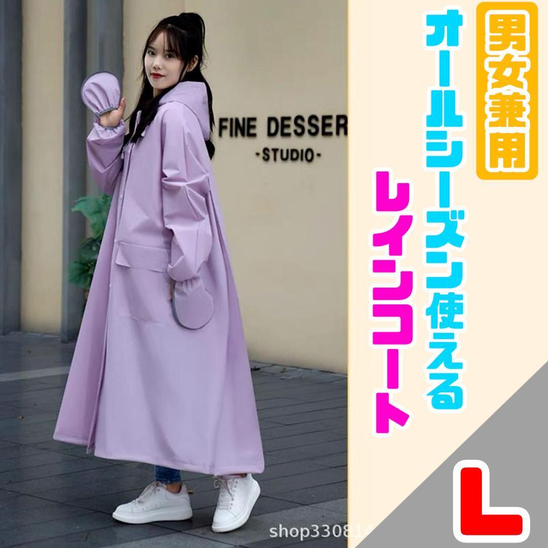 - レインコート L パープル 自転車 ポンチョ レインウェア 雨具 男女兼用