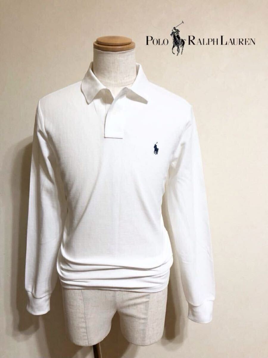 > 【美品】 Polo Ralph Lauren ポロ ラルフローレン アイコン 鹿の子 ポロシャツ トップス サイズM 長袖 白 カスタムスリムフィット