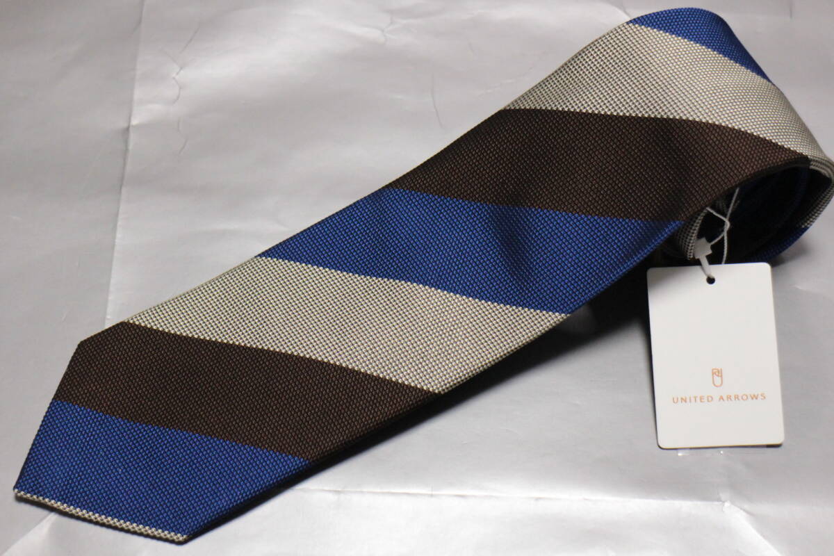 - アルクーリ*アローズ新品ネクタイ超華麗ロイヤルブルー*ブラウン*ベージュレジメンタルワイドピッチ段落ちハンドメイド大人気柄