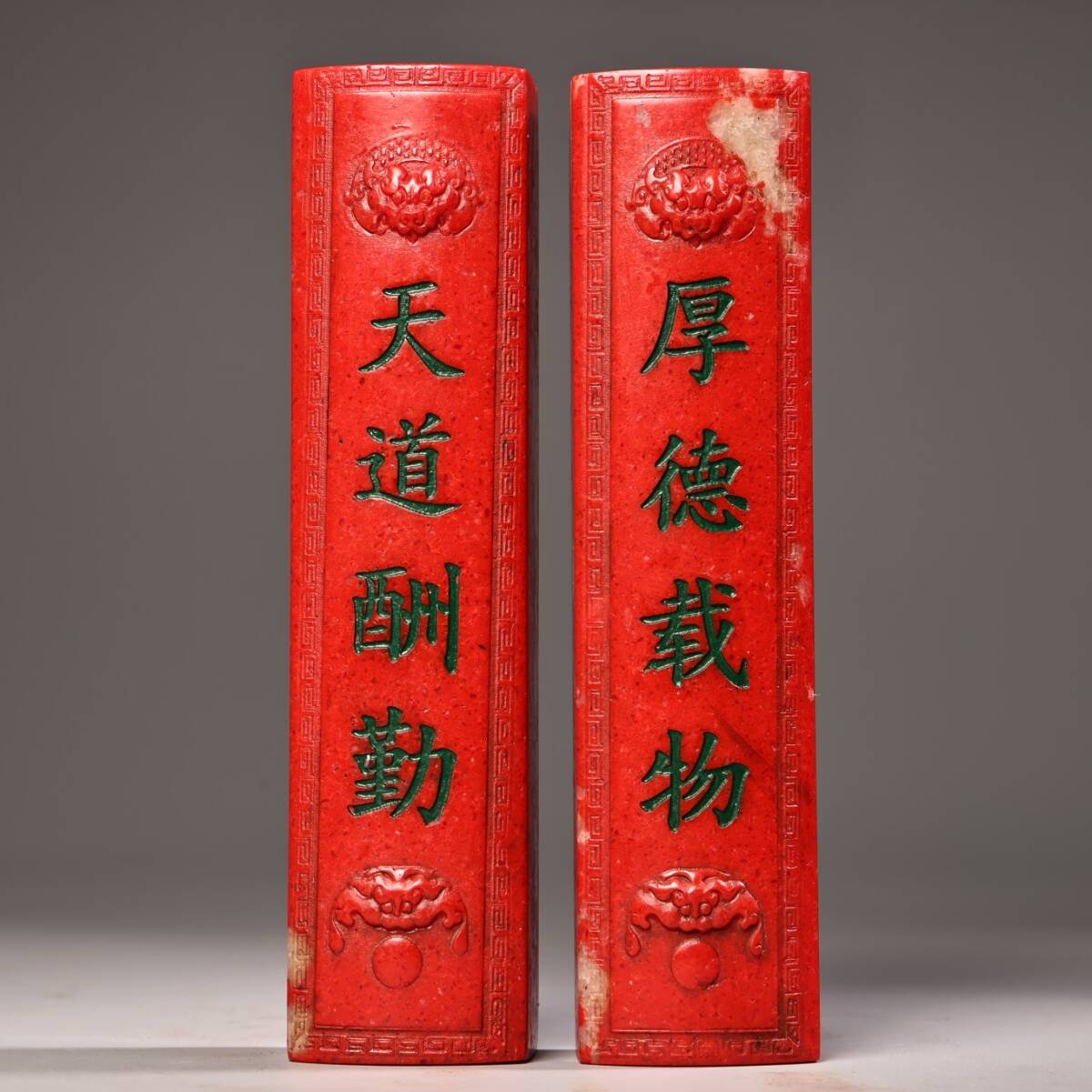 - 蔵友館蔵品 寿山石 鶏血石細密彫 大紅袍 文鎮 文房具 書道品 極細工 置物擺件 古美術品 古董品 旧家蔵出 旧家供養品
