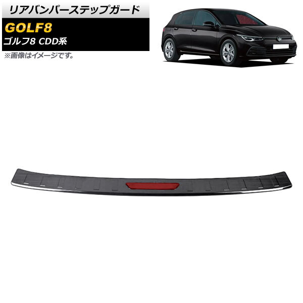 > リアバンパーステップガード フォルクスワーゲン ゴルフ8 CDD系 2021年06月~ ブラック×レッド ステンレス製 ヘアライン仕上げ