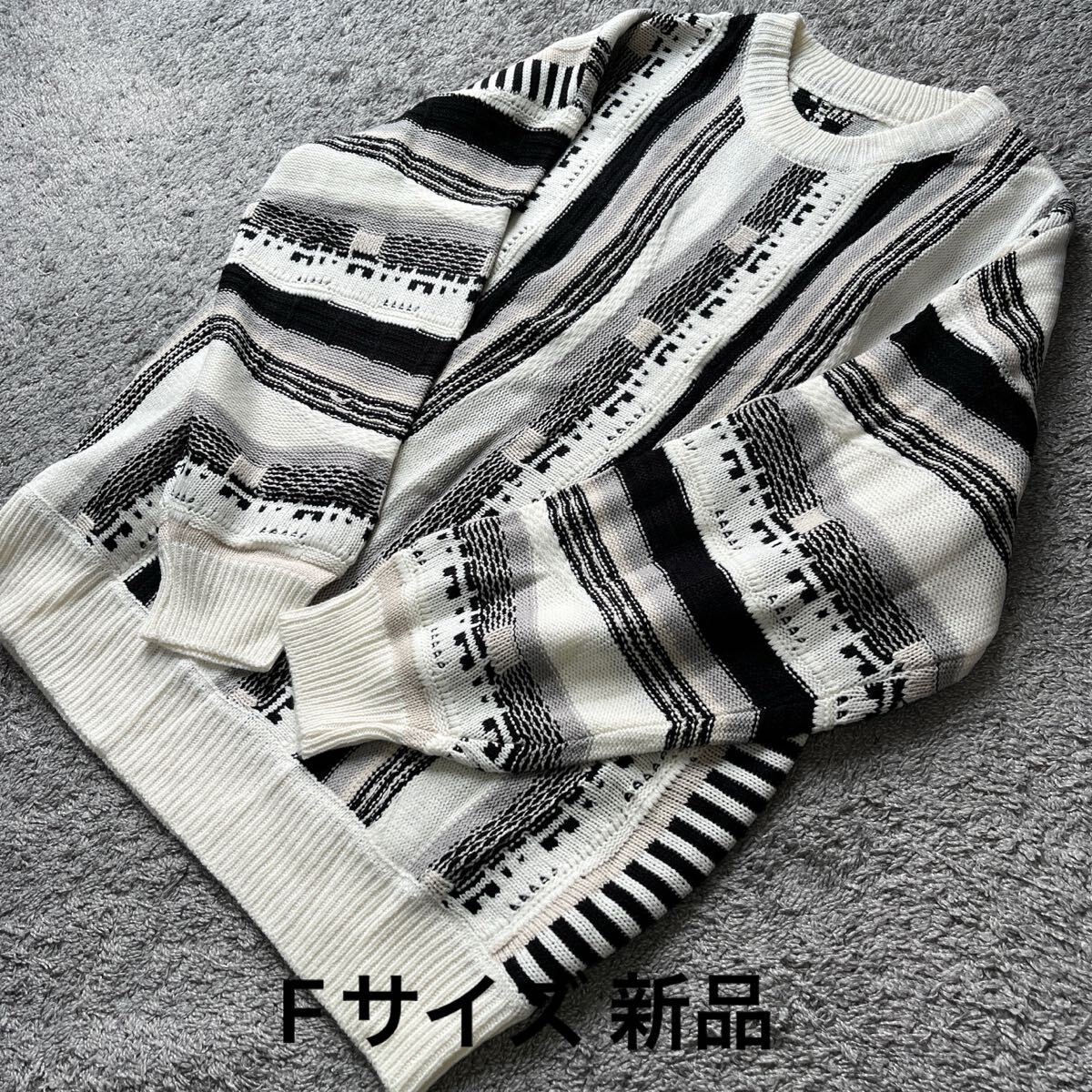 - 白地に黒グレー系ジャガードニット長袖F★新品7