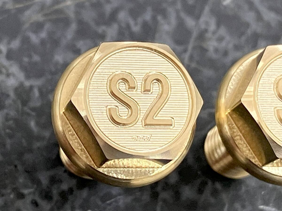 - ウエダレーシング 真鍮削り出し ナンバーボルト M6x14 (S2) 1セット (2個)250SS 350SS 400SS 500SS マッハ マッハ2 750SS KH SS ウエダ