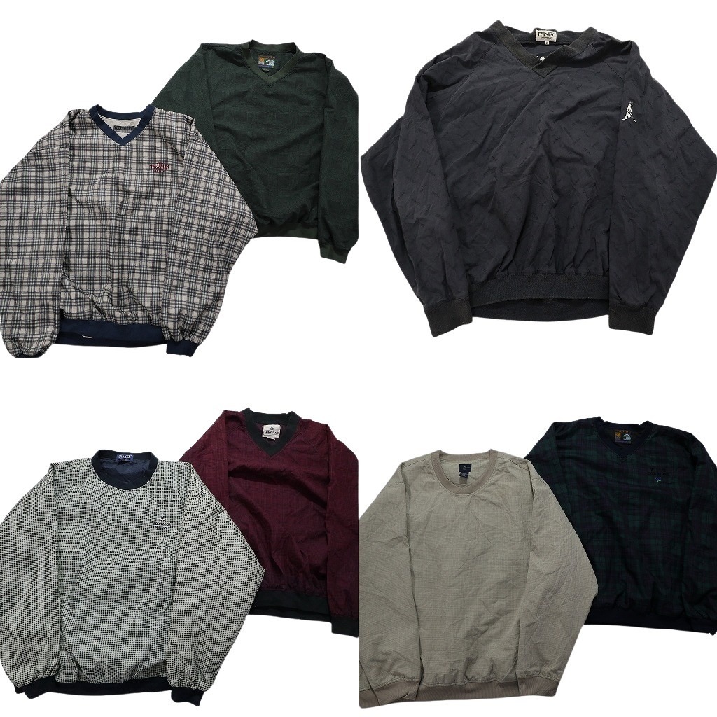 > 古着卸 まとめ売り 柄物 プルオーバー ジャケット 7枚セット (メンズ XL ) Vネック チェック柄 総柄 中古 古着 NB6744