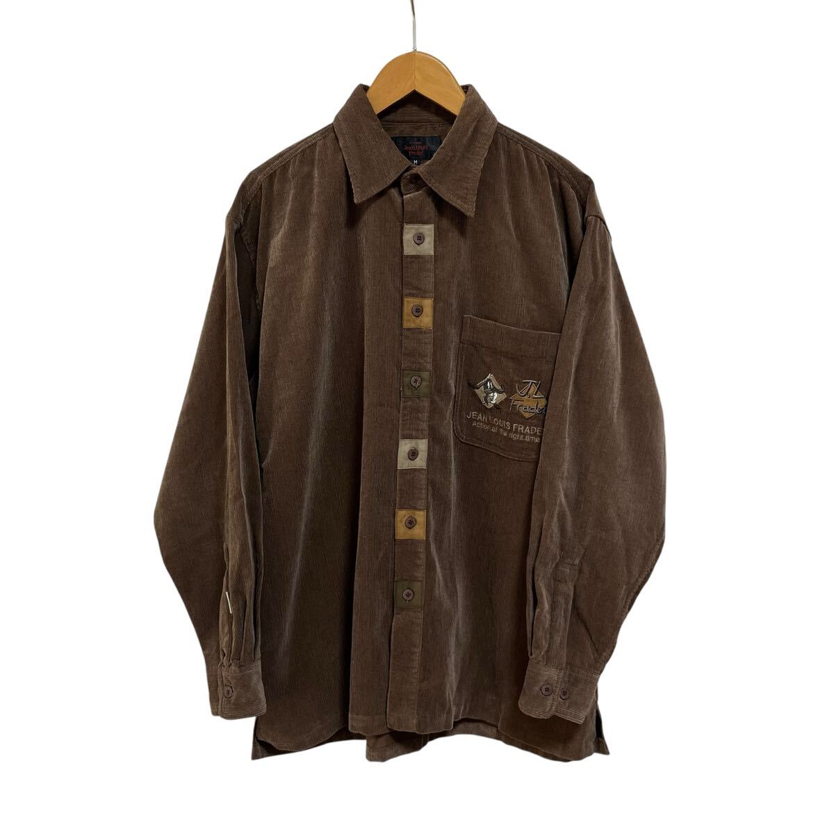 - ※N JEANS LOUIS FRADET ジャンルイフラデ 長袖コーデュロイシャツ ブラウン キャラクター 刺繍 ボックス型 コットン100% サイズM