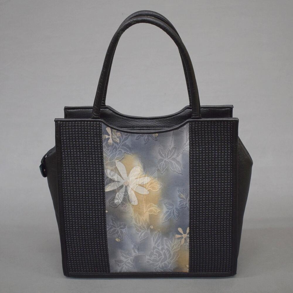 - A56-4【凛々】即決 中古品 トートバッグ 黒色 花柄 着物にも