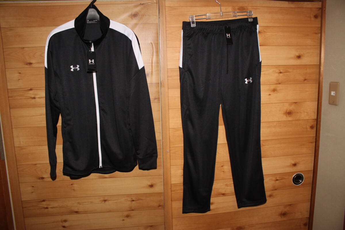 > 未使用 3XL 大きいサイズ 黒白 アンダーアーマー ジャージ上下セット ロゴ刺繍 裾ジップ 送料無料 UNDER ARMOUR