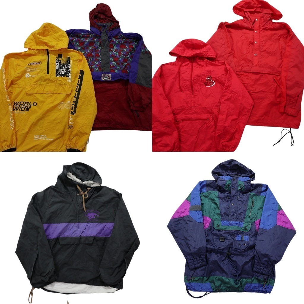 > 古着卸 まとめ売り アノラックパーカー ジャケット 6枚セット (メンズ L ) スナップボタン アームロゴ 総柄 中古 古着 NB1183