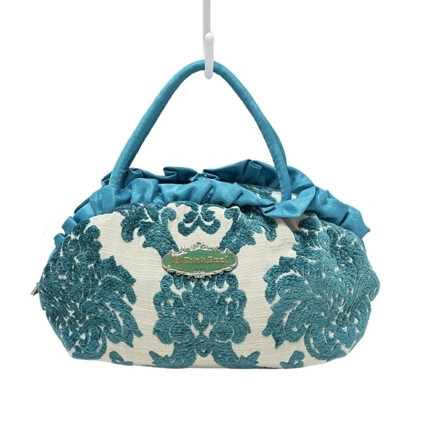 > シンクビー ThinkBee ハンドバッグ - コットン アイボリー×ライトブルー フラワー(花)/フリル/ミニバッグ 美品 バッグ