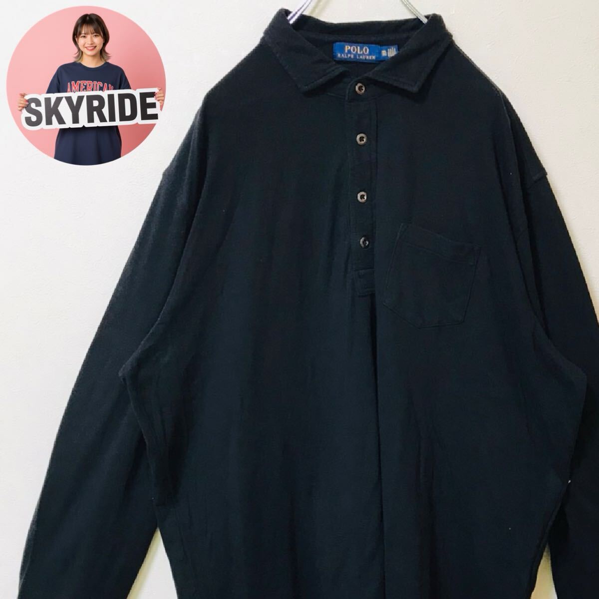 - 【人気】POLO RALPH LAUREN ポロ ラルフローレン 00s メンズ プルオーバー長袖ポロシャツ ブラック XXL 刺繍ロゴ 古着 #TT0306