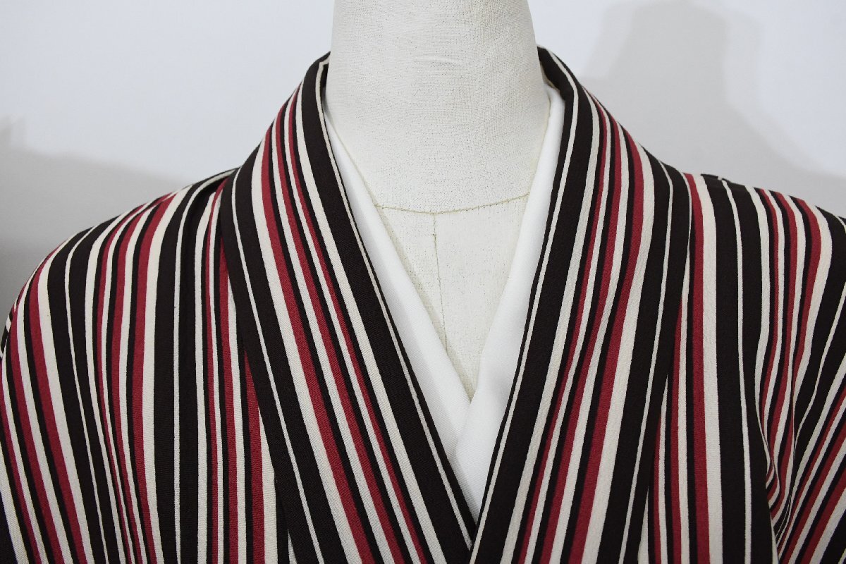 - 小紋 着物 袷 縞 しましま 創世舎 洗える着物身丈163cm 裄丈68cm ★ kb-7179 桜庭呉服店