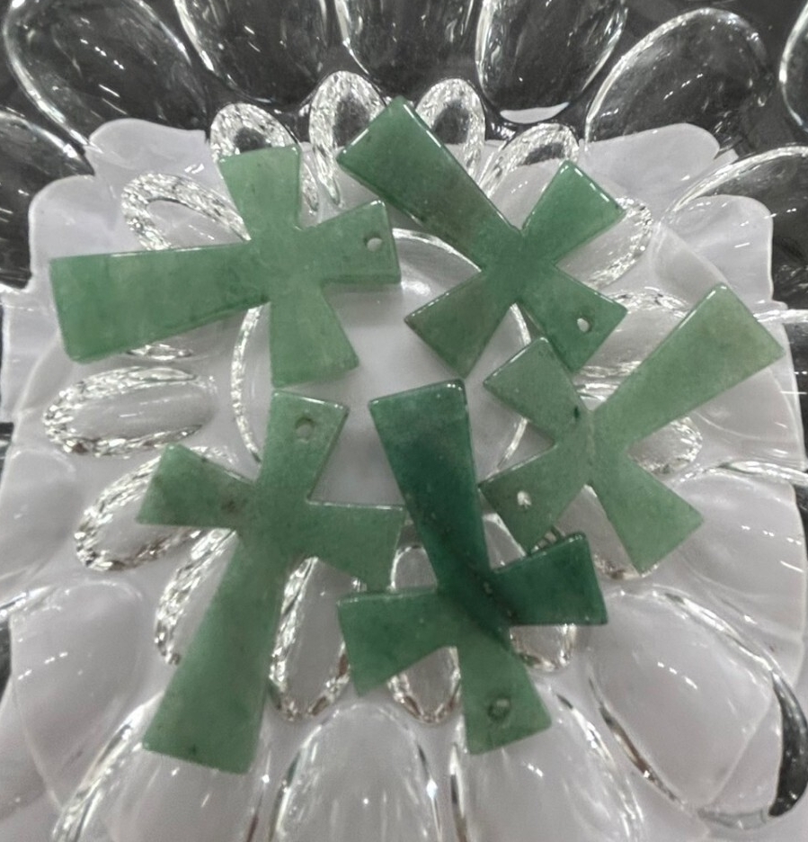 > L27☆未使用 大量 チェコ ガラスビーズ 35g 40×30mm クロス 十字架 ロザリオ グリーン 緑 大粒 ヴィンテージ パーツ ネックレス B-446