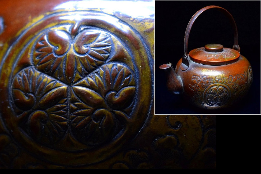 時代 徳川葵御紋 古銅金銅唐草地文 水注 湯沸 煎茶道具 茶器