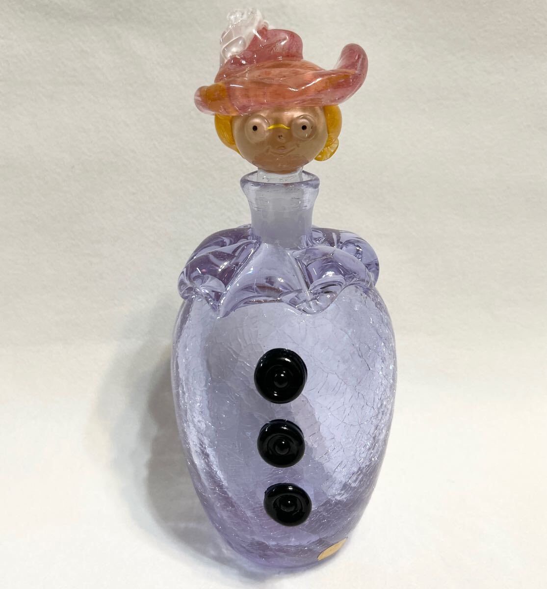 - ボヘミアガラス デキャンタ ヴィンテージ 人物モチーフ クラックルガラス シール付 Bohemia Glass Czechoslovakia デカンタ 1960年代
