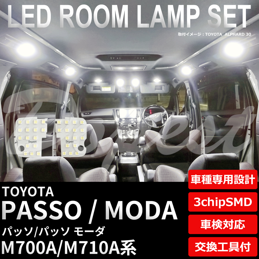 > パッソ/モーダ LEDルームランプセット M700A/710A系 全グレード 室内灯 6500K純白 専用設計 車検対応 車内灯