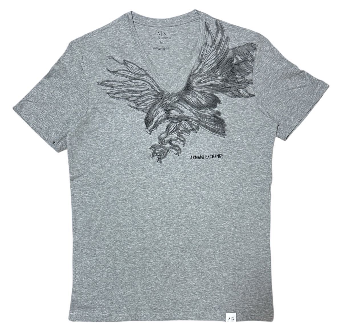 - 送料無料 ○ A/X ARMANI EXCHANGE アルマーニ エクスチェンジ ○ ビッグ イーグルロゴ 刺繍 プリント Vネック 半袖 Tシャツ 杢グレー M