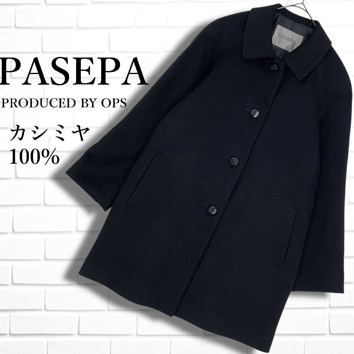 > ◆美品◆ PASEPA カシミヤ 100% ゆったり♪ ステンカラー コート 黒 ブラック レディース 9 ◆送料無料◆ 1465I◇