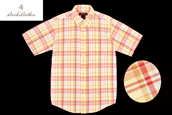 > Y-9759★送料無料★美品★Brooks Brothers ブルックスブラザーズ★国内正規品 マルチ チェック柄 ボタンダウン 半袖 シャツ M