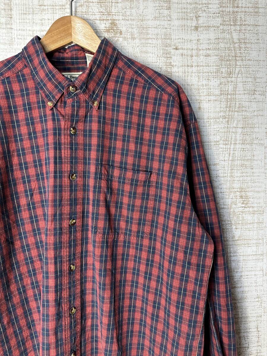 - ☆US古着 L.L.Bean エルエルビーン 綿シャツ 生地 長袖 チェック柄 ポケット レッド赤×ネイビー紺【L】コットン ◆5159◆