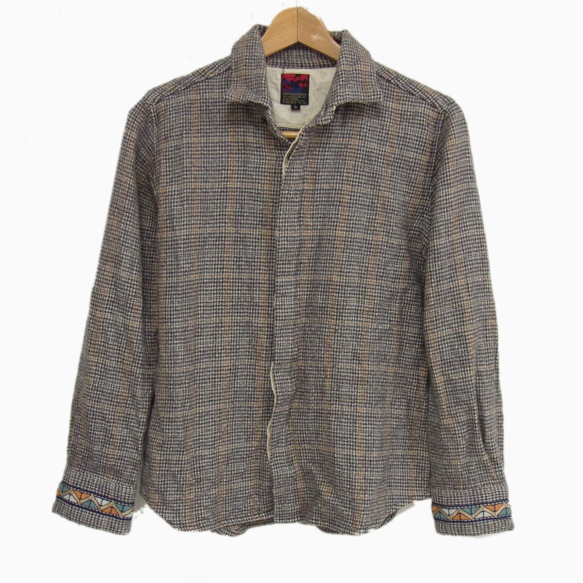 > ◇BRU NA BOINNE アルパカ混紡 比翼型 ツイード 長袖シャツ 千鳥格子柄 チェック チロリアンテープ ブルーナボイン メンズ