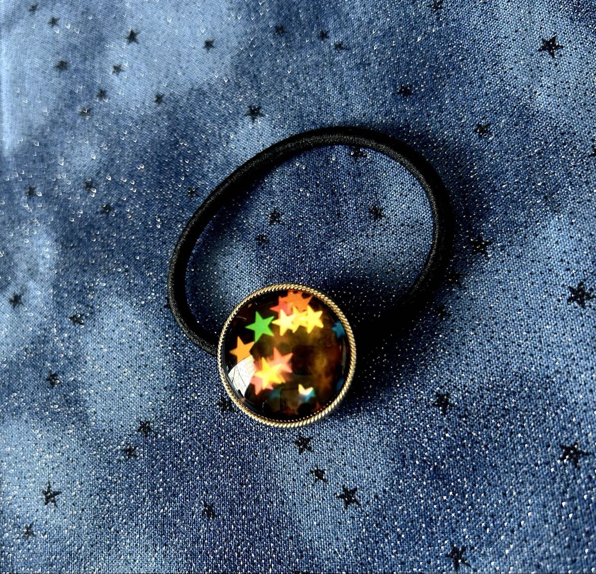 - ハンドメイド ヘアゴム 夜空 星 ガラスカボション
