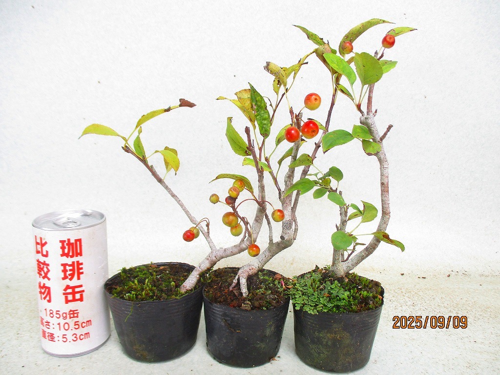 - [緑の市場]海棠 3点組 9/9実付~落果減少想定(9724黒ポット)全高:28㎝*同梱包対応「まとめて取引」厳守*80サイズ送料明記