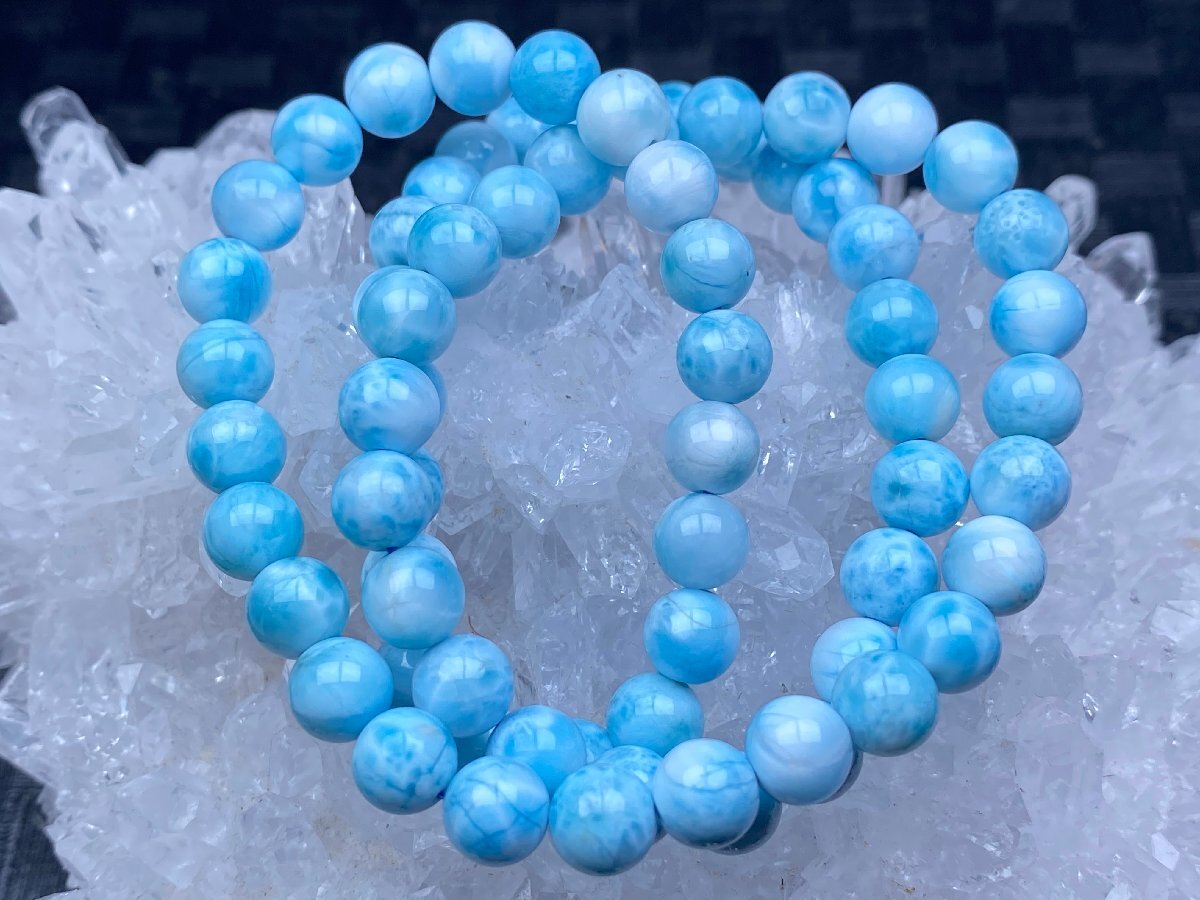 - 即決 0615k324 天然石★【ドミニカ共和国産の30Aラリマー】★ 3重巻き 7.5mm 50cm(新品)