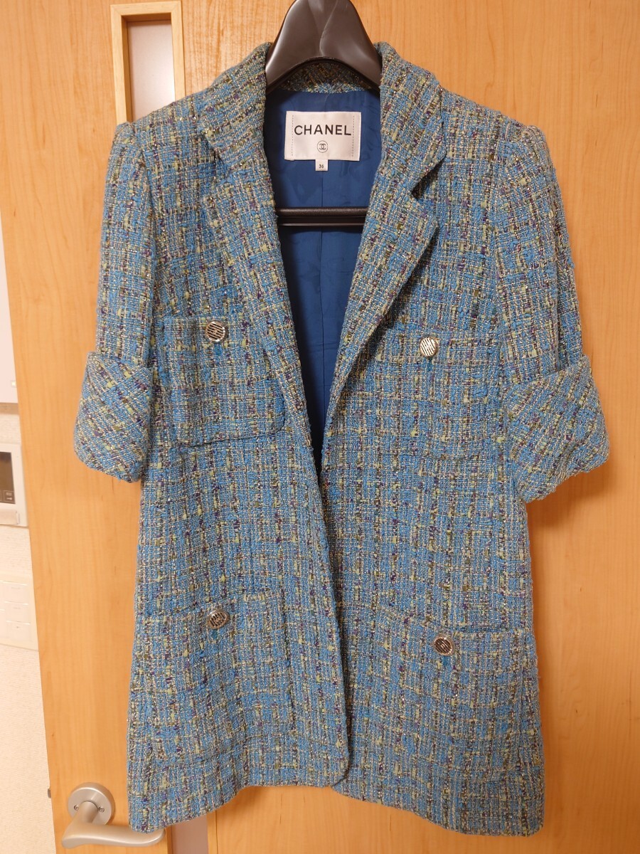 - 【最終値下げ】シャネル ツイードジャケット ブルー 表記36 ジャケット レディース CHANEL ココマーク ジャケット