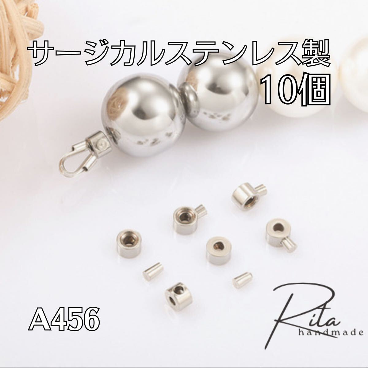 - 10個 サージカルステンレス ワンパッチン ストッパーボール 3mm メタルボール メタルビーズ 金具 固定できる金具 シルバー