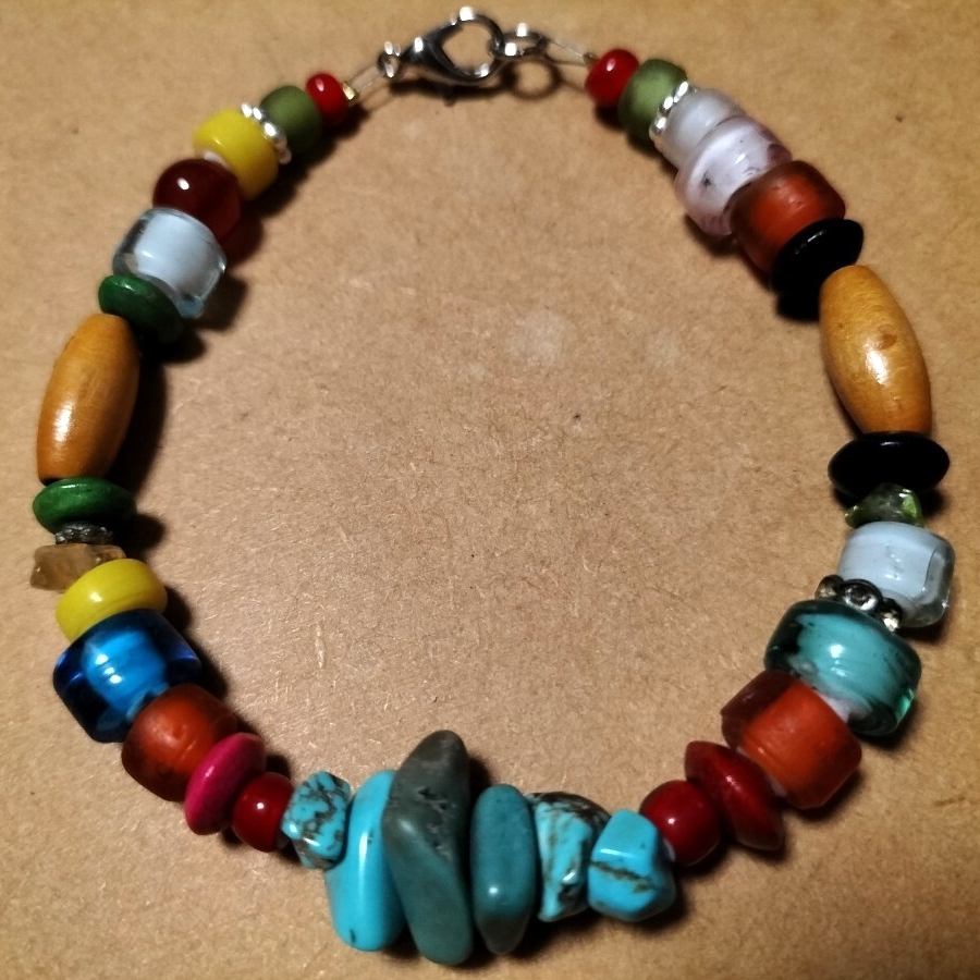 - ヴィンテージ インディアン ターコイズ ブレスレット 赤レッド 緑 ナバホ オールドビーズ 極太 ズニ とんぼ玉 天然石 メキシコ ズニ ホピ