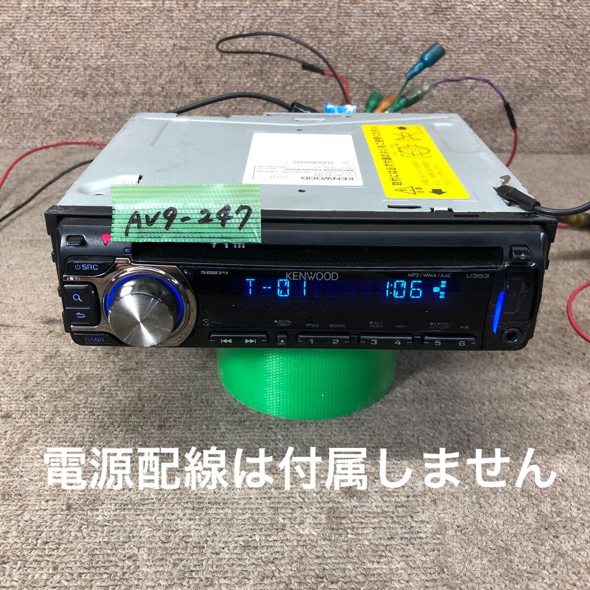 > AV9-247 激安 カーステレオ KENWOOD U353S 10500220 CDプレーヤー FM/AM USB AUX オーディオ 本体のみ 簡易動作確認済み 中古現状品