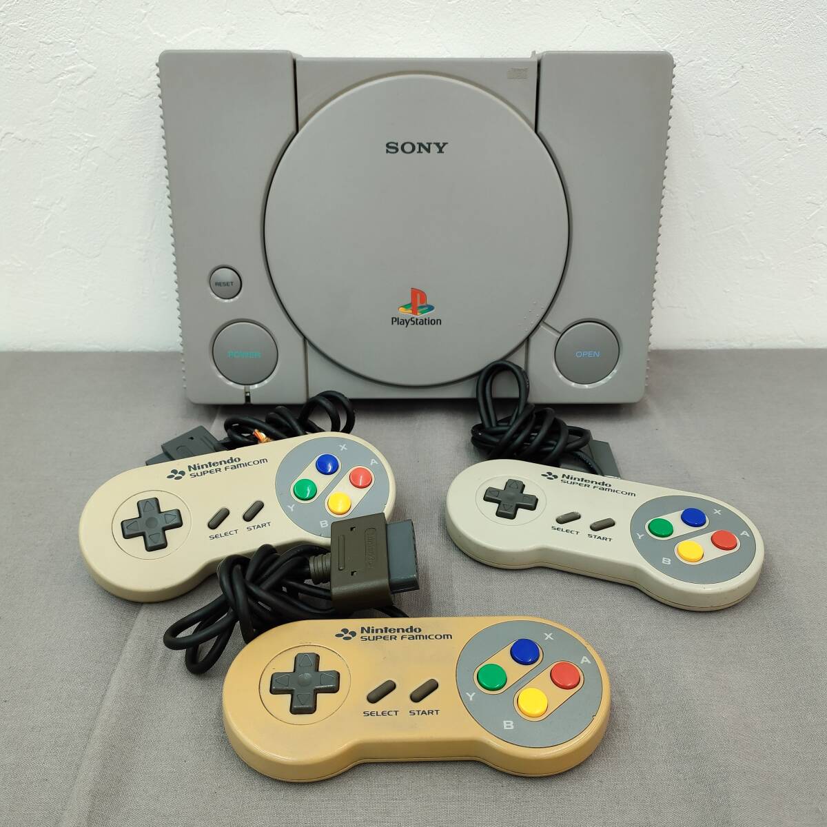 > 070912 295157-44 PlayStation(プレイステーション)本体 スーパーファミコンコントローラー 通電動作未確認 ジャンク品