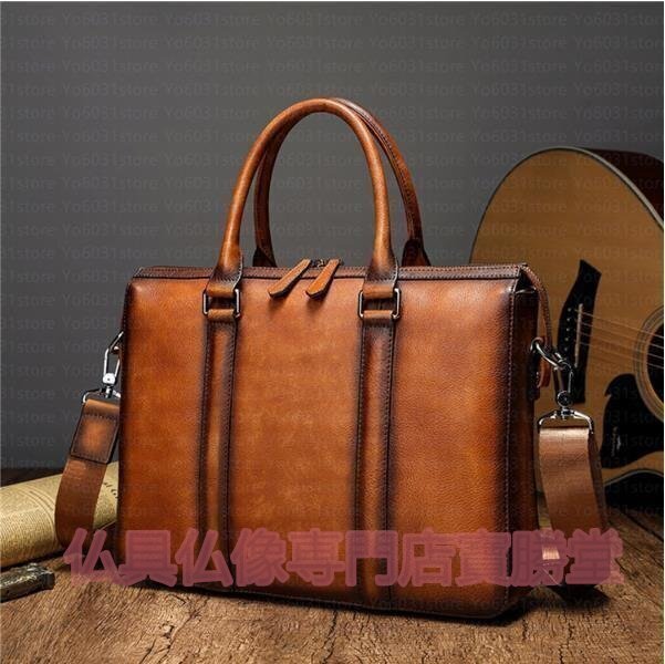 - 【寶勝堂】高品質★り 手染め ヌメ革 ハンドメイド メンズバッグ 本革 ビジネスバッグ レザー 通勤鞄トートバッグ 手提げバッグ サイズ対応