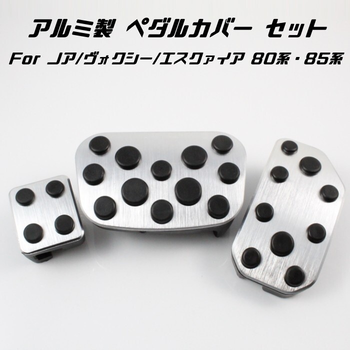> トヨタ ペダルカバー シルバー 80系 ノア ヴォクシー エスクァイア 前期 後期 3点セット アルミ製 アクセル ブレーキ パーキングブレーキ