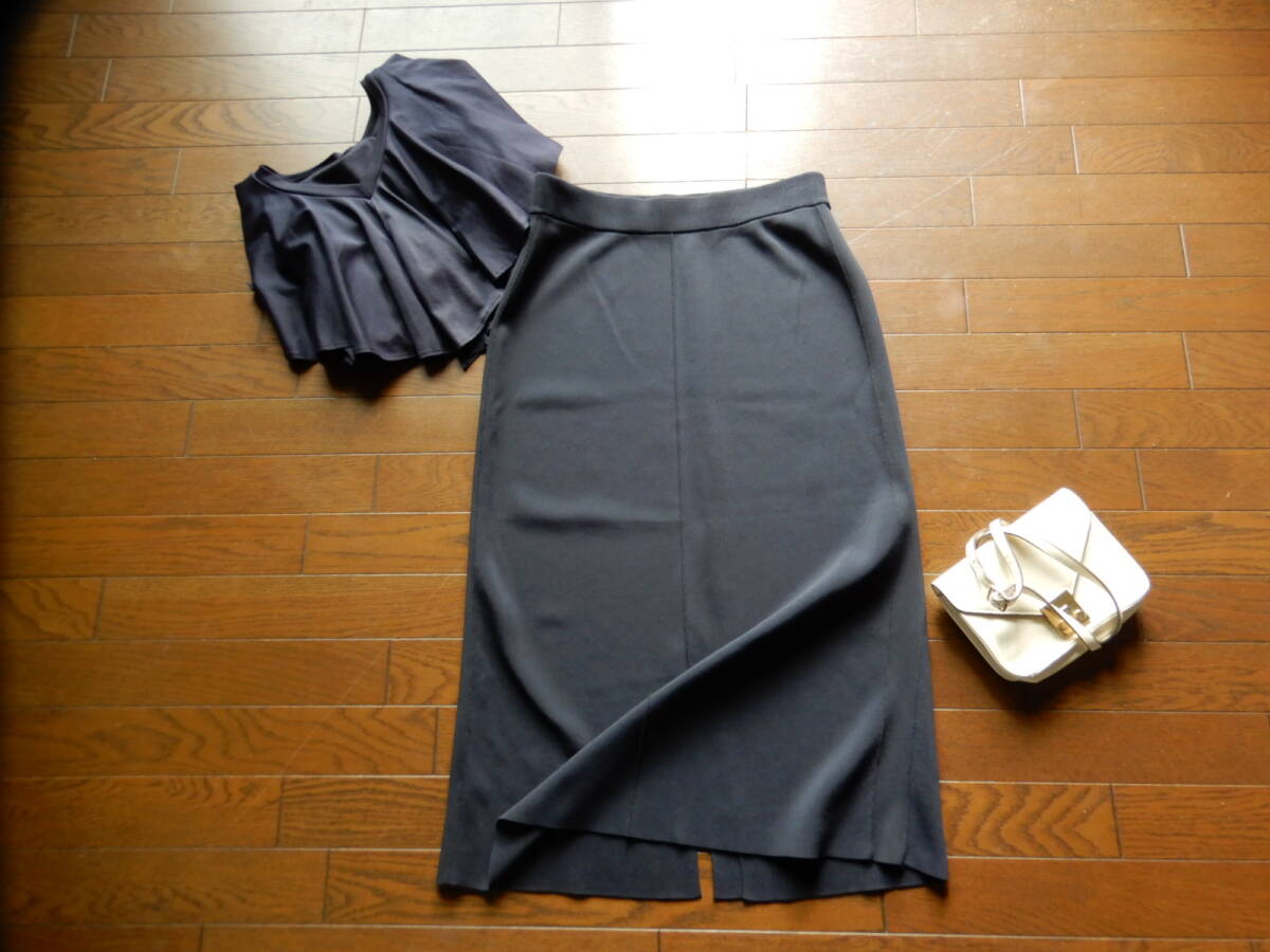 - 【ICB/アイシービー】Lサイズ 洗える大人可愛いウエストゴムクロスコンビニットスカート ネイビー