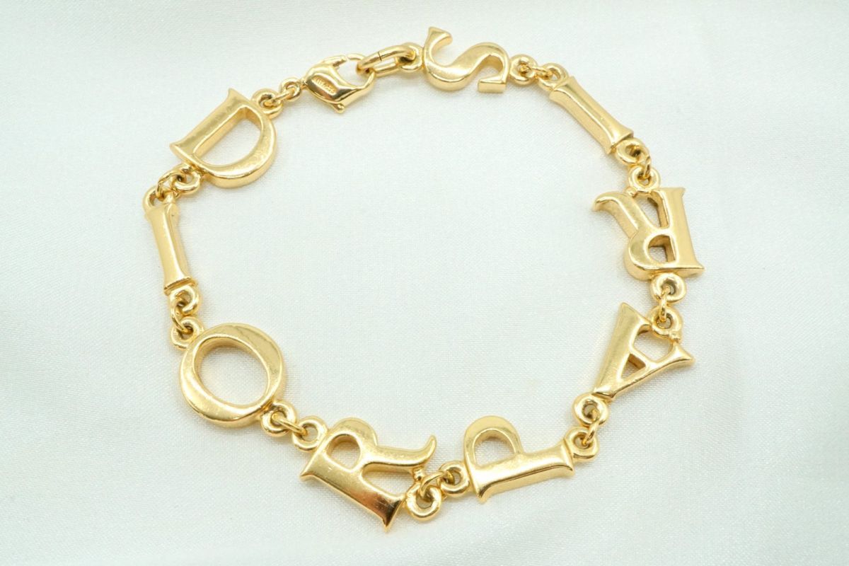 - クリスチャン ディオール ヴィンテージ チェーン ブレスレット アルファベット ロゴ アクセサリー 金メッキ ゴールド Christian Dior 3604j