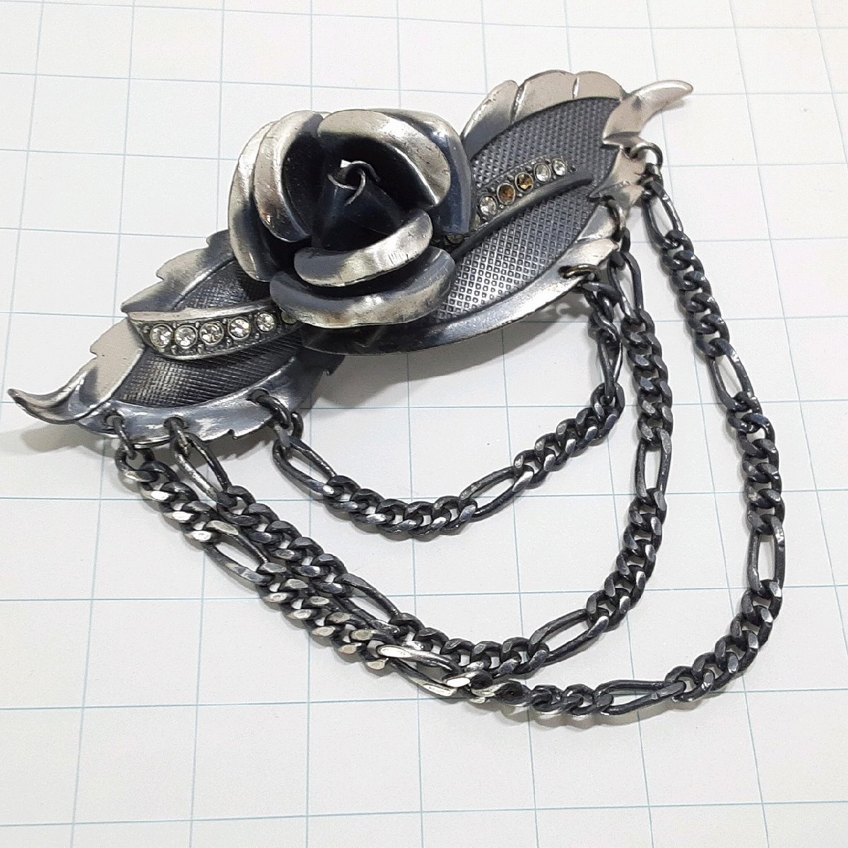 - 送料無料)ビンテージ☆薔薇 チェーン☆アンティーク ブローチ A32020