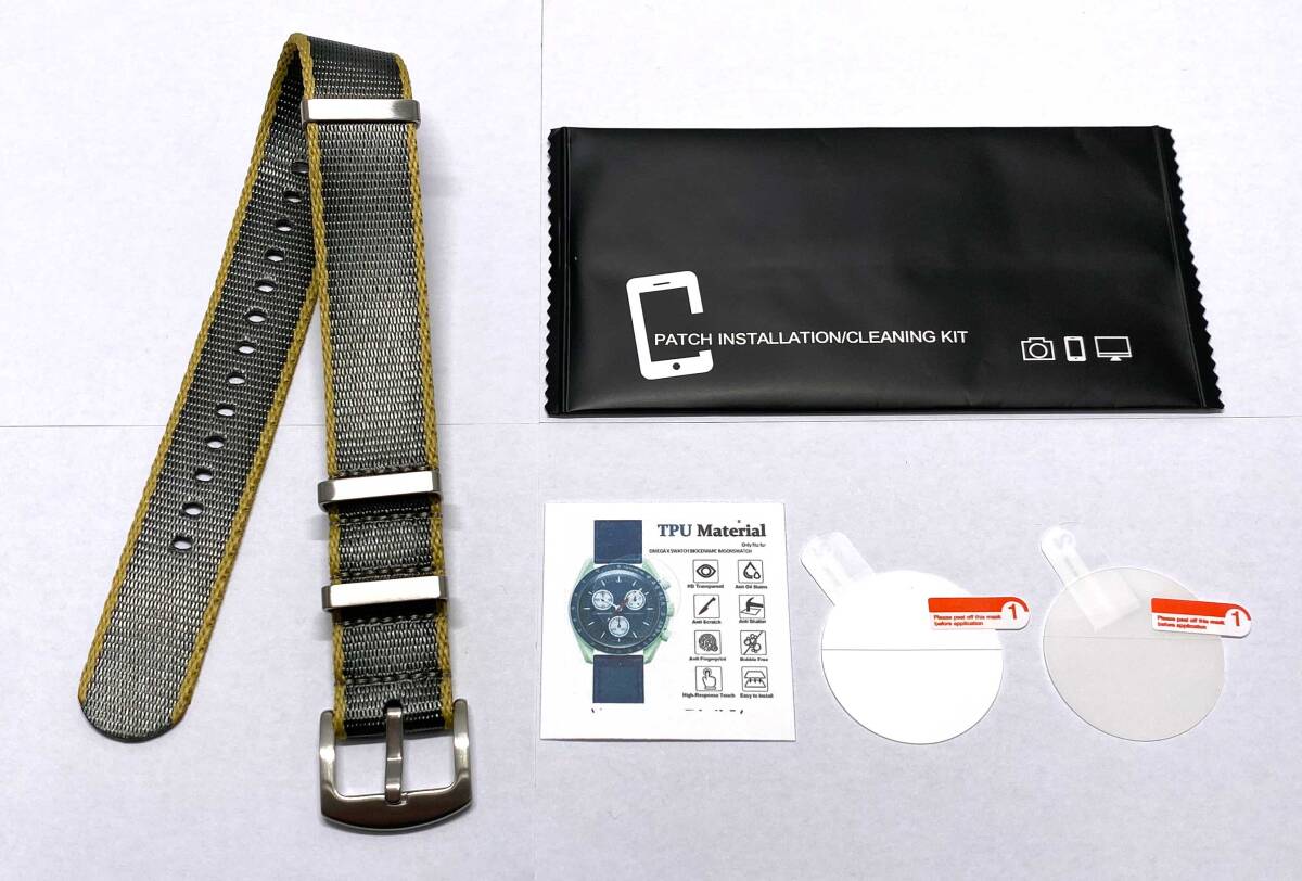 - 【未使用・修理部品】OMEGA X Swatch オメガ スウォッチ 対応 保護フィルム ナトーベルト セット おまけ-フィルム+1枚/バネ棒2本 / BY-1121
