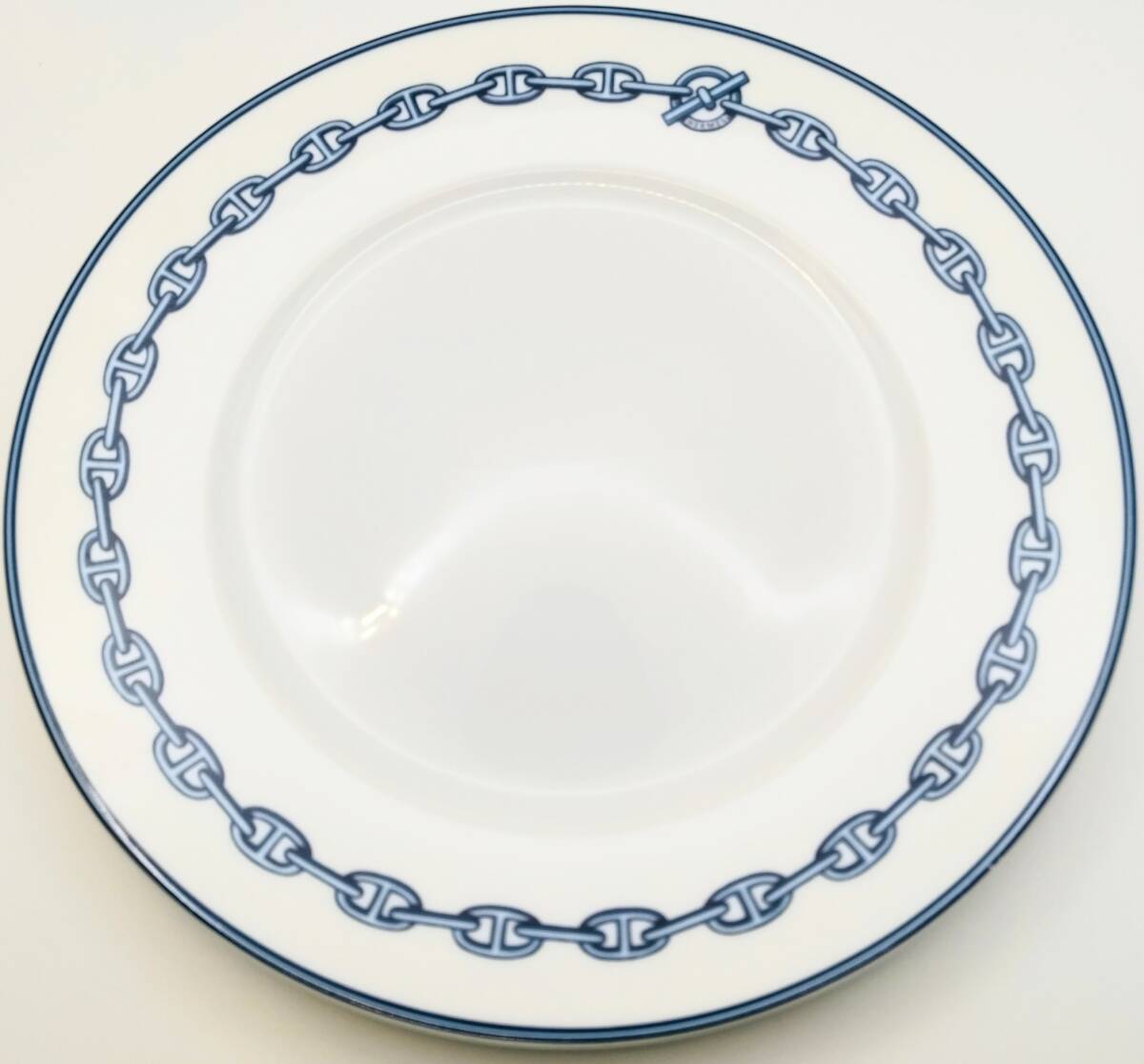 > FK2226【現状品】HERMS シェーヌダンクル プレート ホワイト ブルー 27.7cm チェーン 食器 洋食器 洋皿 丸皿 浅皿 中皿 エルメス