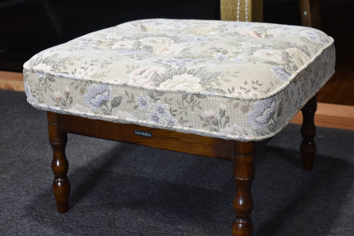 > 3.■カリモク RC60モデル スツール オットマン 平織/花柄 人気 コロニアルシリーズ COLONIAL karimoku 国産/日本製■中古/美品■