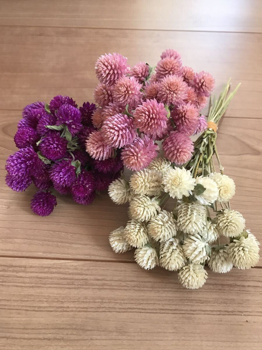 - 【鮮やかきれい!】3色セット★千日紅ドライフラワー枝付75本★大粒できれいです!センニチコウ