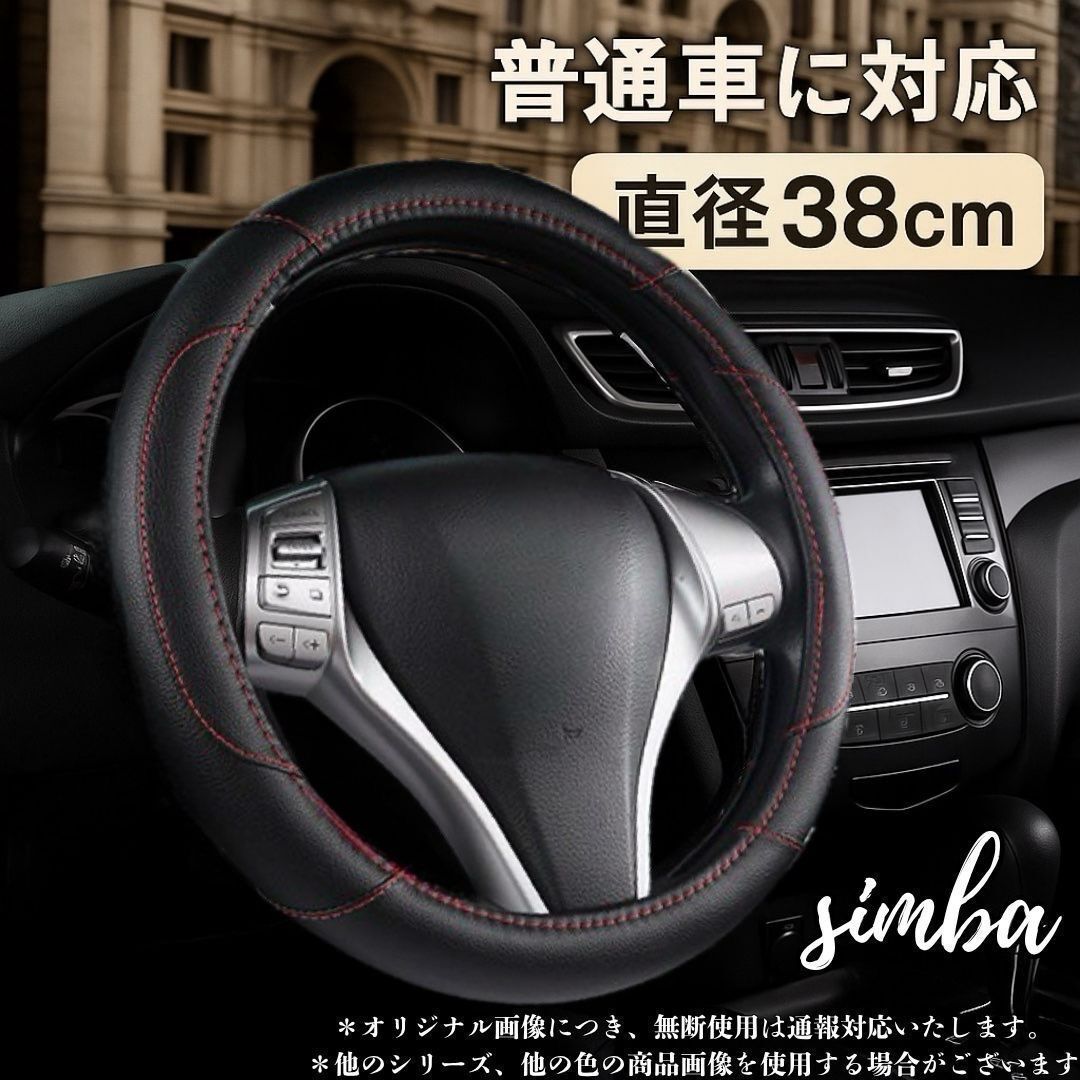 - 【高品質PUレザー】ハンドルカバー 38cm 黒 滑り止め 通気性抜群 ステアリング カスタム 内装ドレスアップ