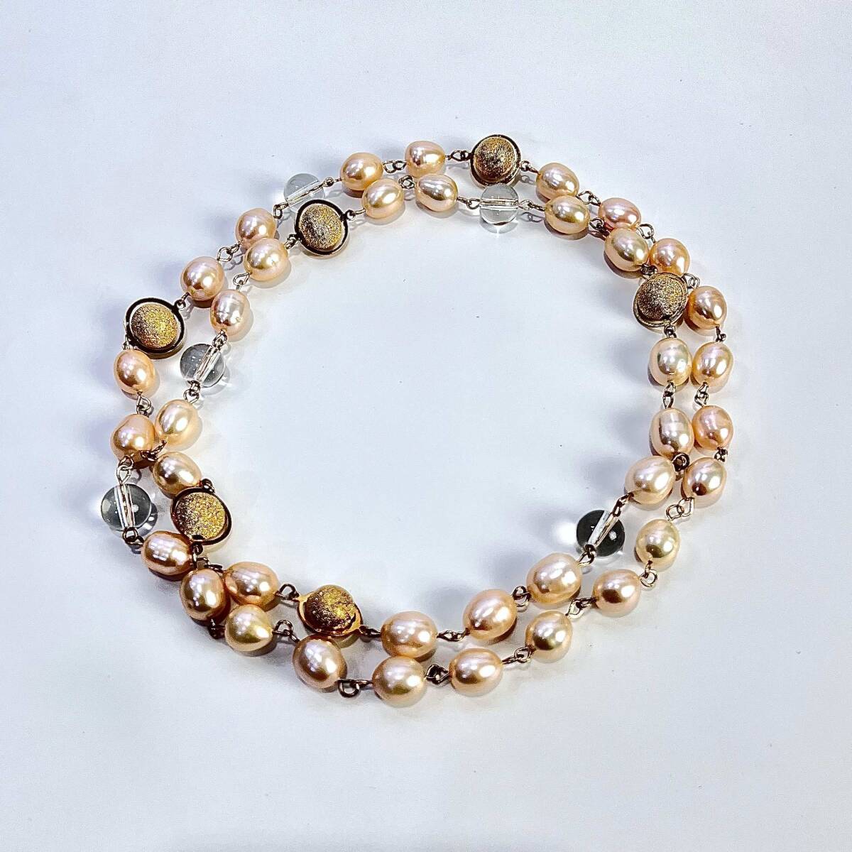 - GP 淡水 パール ロング ネックレス 80cm ピンク メッキ レディース アクセサリー 未使用品