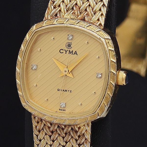- シーマ QZ 616 ゴールド文字盤 石付 スクエア レディース腕時計 2550000NKG