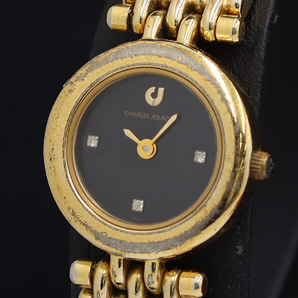 - 保/箱付 稼働 シャルルジョルダン QZ 黒文字盤 石付 3821408 レディース腕時計 OGH 2000000 NSK