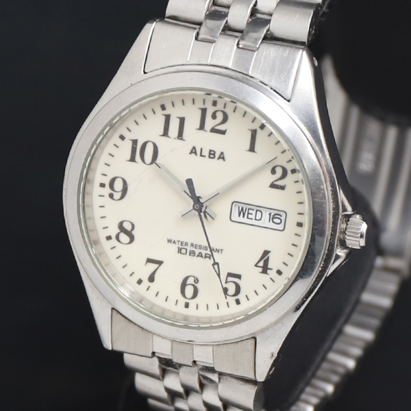 - 稼働 QZ セイコー アルバ 7N33-K002 アイボリー文字盤 デイデイト レディース腕時計 2000000 NSK KRK