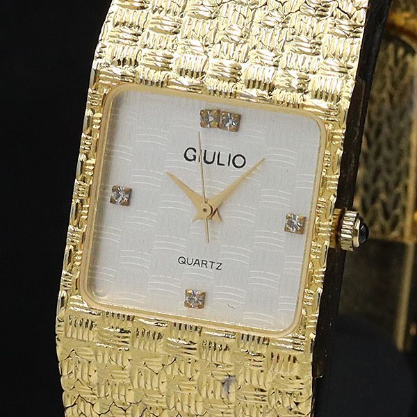 - 稼働 良品 ジュリオ QZ 石付 シルバー文字盤 スクエア メンズ腕時計 2550000KNK