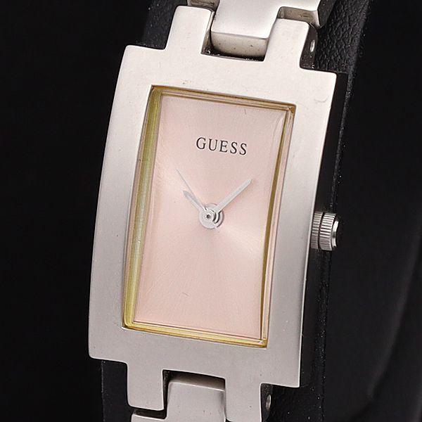 - 稼働 良品 ゲス QZ ライトピンク文字盤 スクエア レディース腕時計 KYM