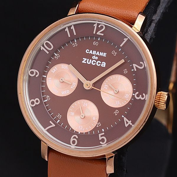- 稼働 良品 カバンドズッカ QZ V33J-0AN0 スモセコ ブラウン文字盤 レディース腕時計 DOI 2550000