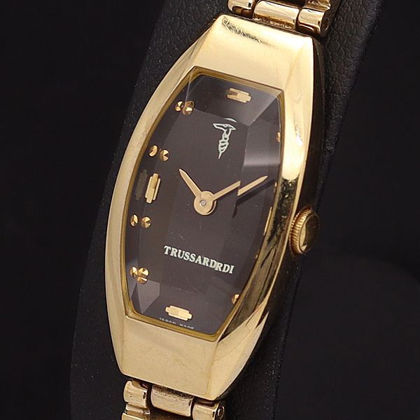 - 稼働 トラサルディー QZ TR-0842 黒文字盤 カットガラス レディース腕時計 NKG